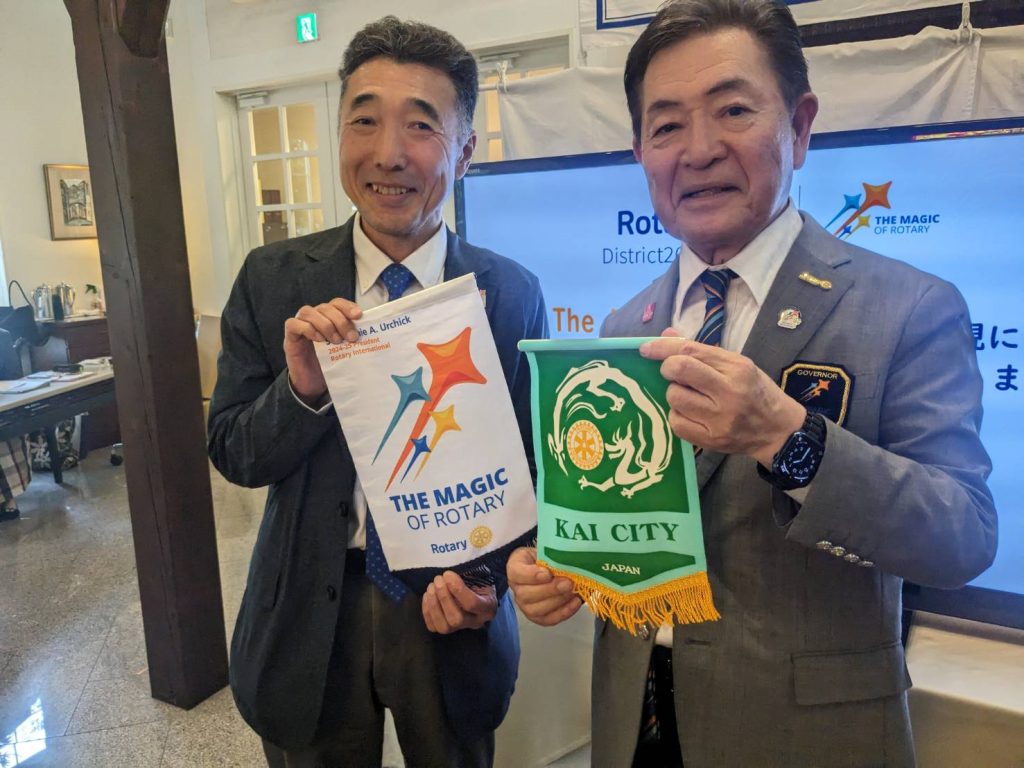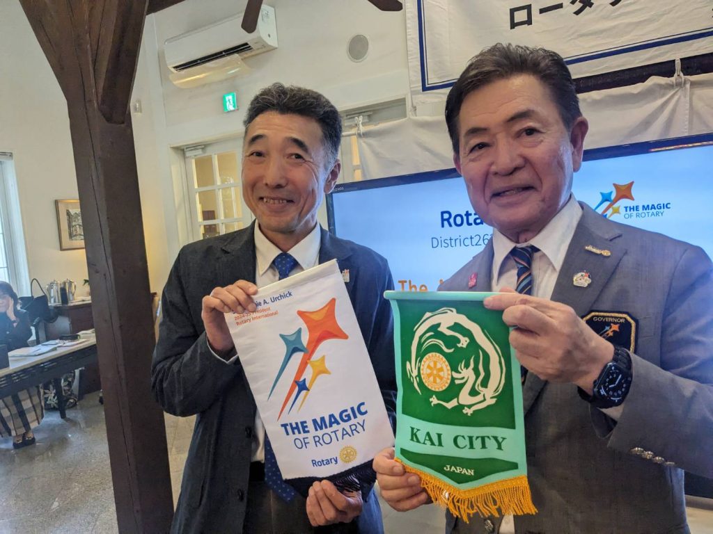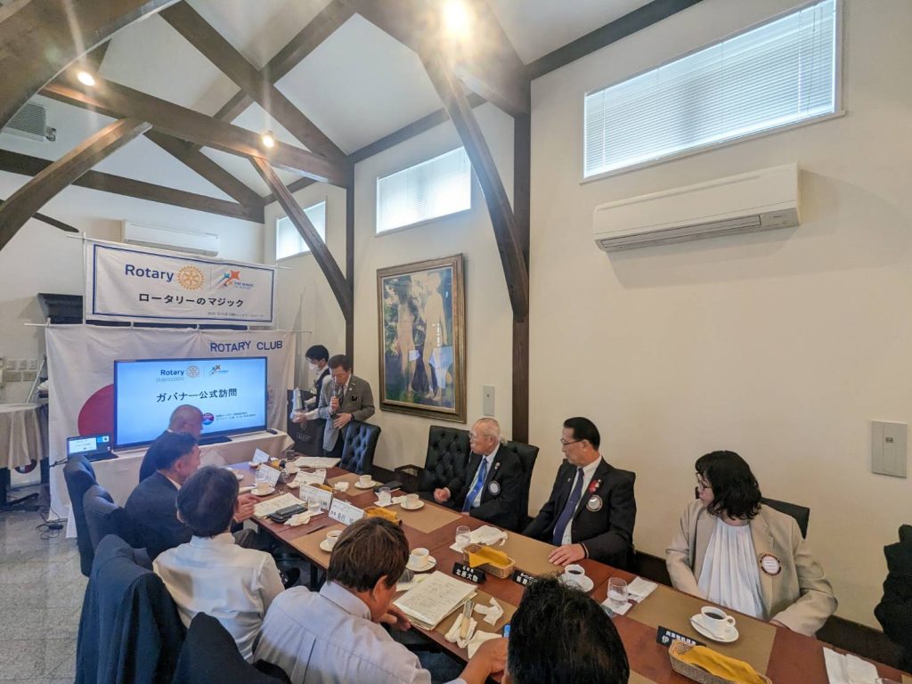 2024年10月16日 2024年10月24日 moichif お知らせ 小泉ガバナー公式訪問 ガバナー挨拶 ガバナー挨拶 バナー交換 バナー交換 会長幹事会の様子 会長幹事会の様子 会長幹事会集合写真 会長幹事会集合写真 吉川会長挨拶 吉川会長挨拶 古着deワクチン 古着deワクチン 例会場の雰囲気 例会場の雰囲気